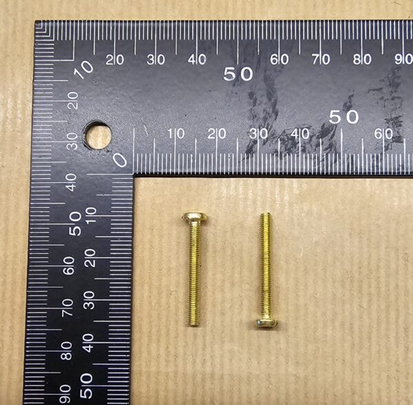 Pack of 10 brass machine screws, slotted pan head. M3 x 25