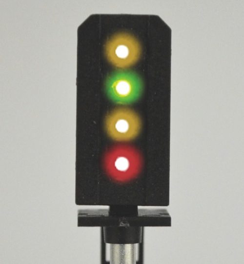 Colour light signal based on the signals used on modern railways. These signals are quick and easy to install and do not require any soldering.
