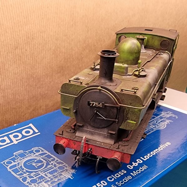 7S-007-DCC1 WEATHERED 57xx Pannier 7754 NCB Green O Gauge – signs of use