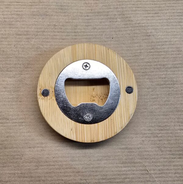 - Material: Natural wood with a stainless steel opener and embedded magnets.